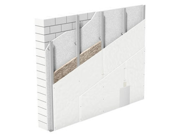 სტანდარტული სისტემა, კონსტრუქციული ხმაურის გაუმჯობესებული იზოლაციით, საბაზისო კედლის სწრაფი მობათქაშებისთვის, თაბაშირ-მუყაოს ფილების გამოყენებით. კონსტრუქცია დაშორებულია საბაზისო კედლიდან, ტიხრის პროფილების (CW, UW) გამოყენებით.